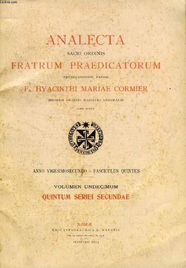 ANALECTA SACRI ORDINIS FRATRUM PRAEDICATORUM, ANNO XXII, FASC. V, SEPT. 1914 (Summarium: Acta Pontificis maximi - Hortatio'. Ad Universos Orbis Catholicos. E Secretaria Status. - Reverendo Patri magistro, fratri Marco Mariae Sales, S. Petri martyris.)