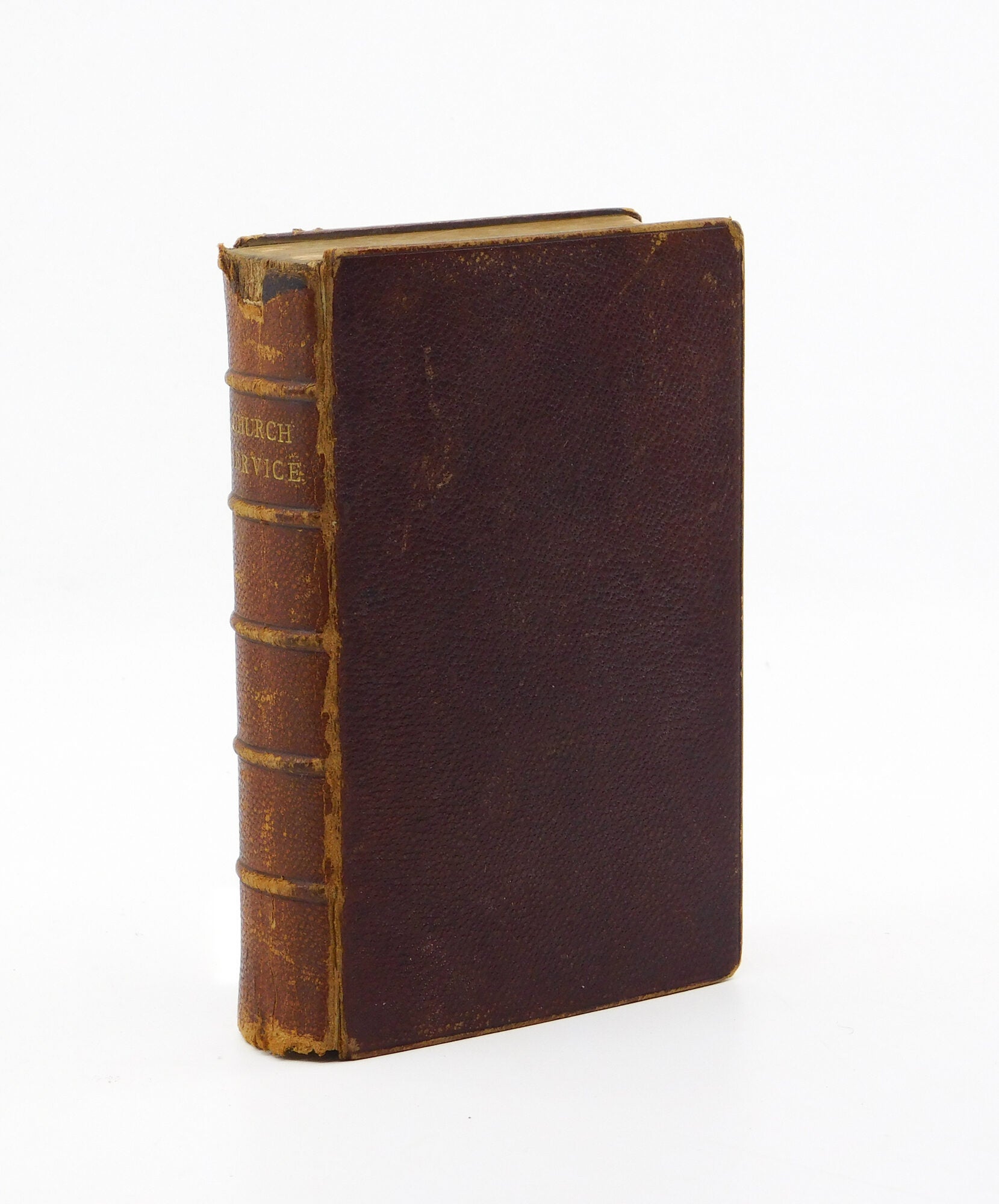 In den Warenkorb legen12mo, brown calf leather, gilt tiles, five raised bands, all edges gilt, gilt dentelles, 254pp [Common Prayer], 232pp [Proper Lessons], 296pp [New Testament]. Boards with considerable rubbing to leather, chips to spine edges, loss to luster of edge gilding, ownership dedication to title page. Contents clean, binding sharp and secure. A rather handsome late 19th century leather edition of the Anglican Book of Common Prayer, together with the proper lessons for morning and evening prayers on Sundays and followed by a complete printing of the New Testament. A nice copy.