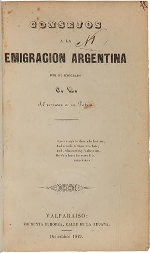 Titel: CONSEJOS A LA EMIGRACION ARGENTINA. POR EL ...