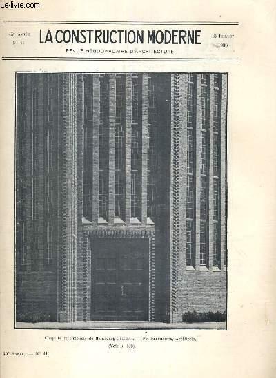 LA CONSTRUCTION MODERNE - 45e VOLUME (1929-1930) - FASCICULE N°41 - CHAPELLE DU CIMETIERE DE HAMBOURG-OHLSDORF, concours de toitures-terrasses - habitations collectives et batiments publics, terrasses, les immeubles à bon marché à Alger.