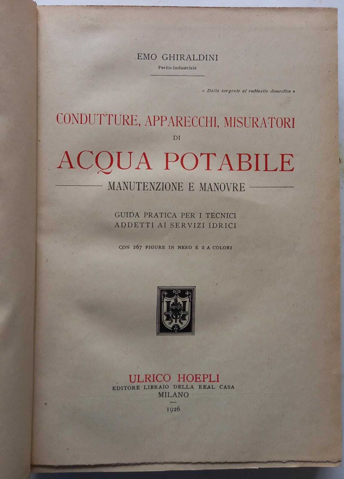 Verlag: , Urlico Hoepli, Luigi Avalli 1924-1926, 1924