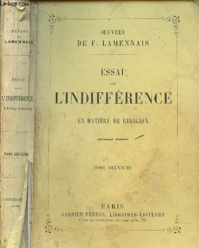 ESSAI SUR L'INDIFFERENCE EN MATIERE DE RELIGION - TOME II / COLLECTION "OEUVRES DE F. LAMENNAIS".