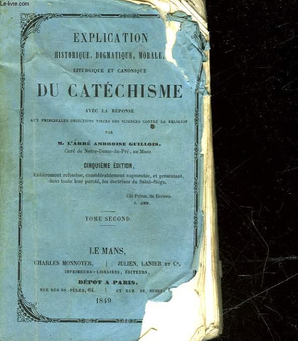 EXPLICATION HISTORIQUE, DOGMATIQUE, MORALE LITURGIQUE ET CANONIQUE DU CATECHISME AEC LA REPONSE - TOME SECOND