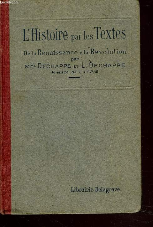 L'HISTOIRE PAR LES TEXTES. DE LA RENAISSANCE A LA REVOLUTION.