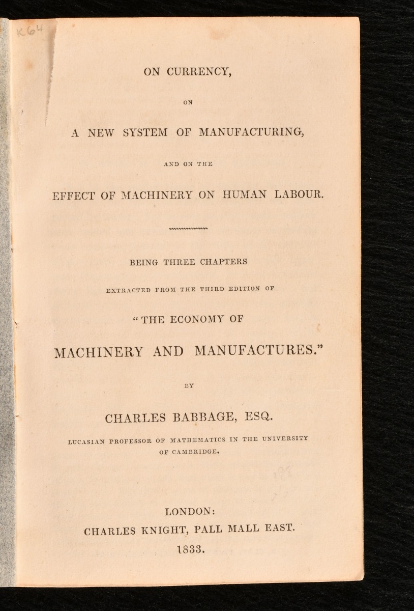 On Currency, on a New System of Manufacturing, and on the Effect of Machinery on Human Labour